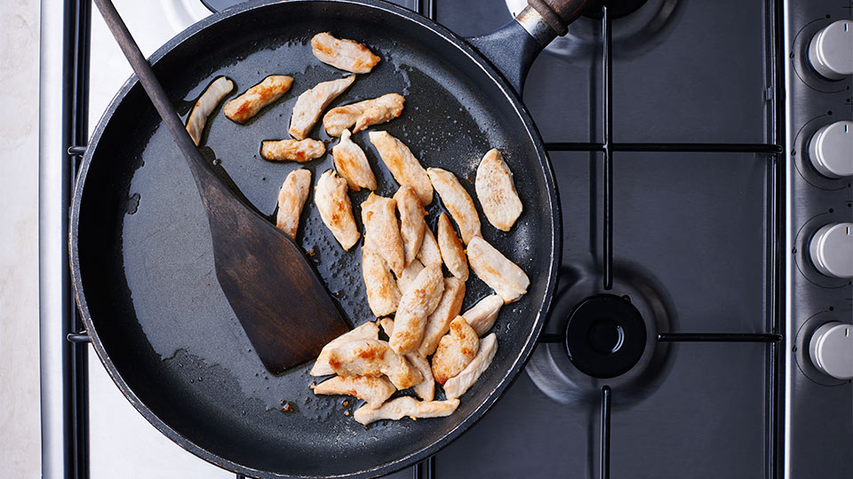 Krok 2: Smażymy kurczaka pokrojonego w paski